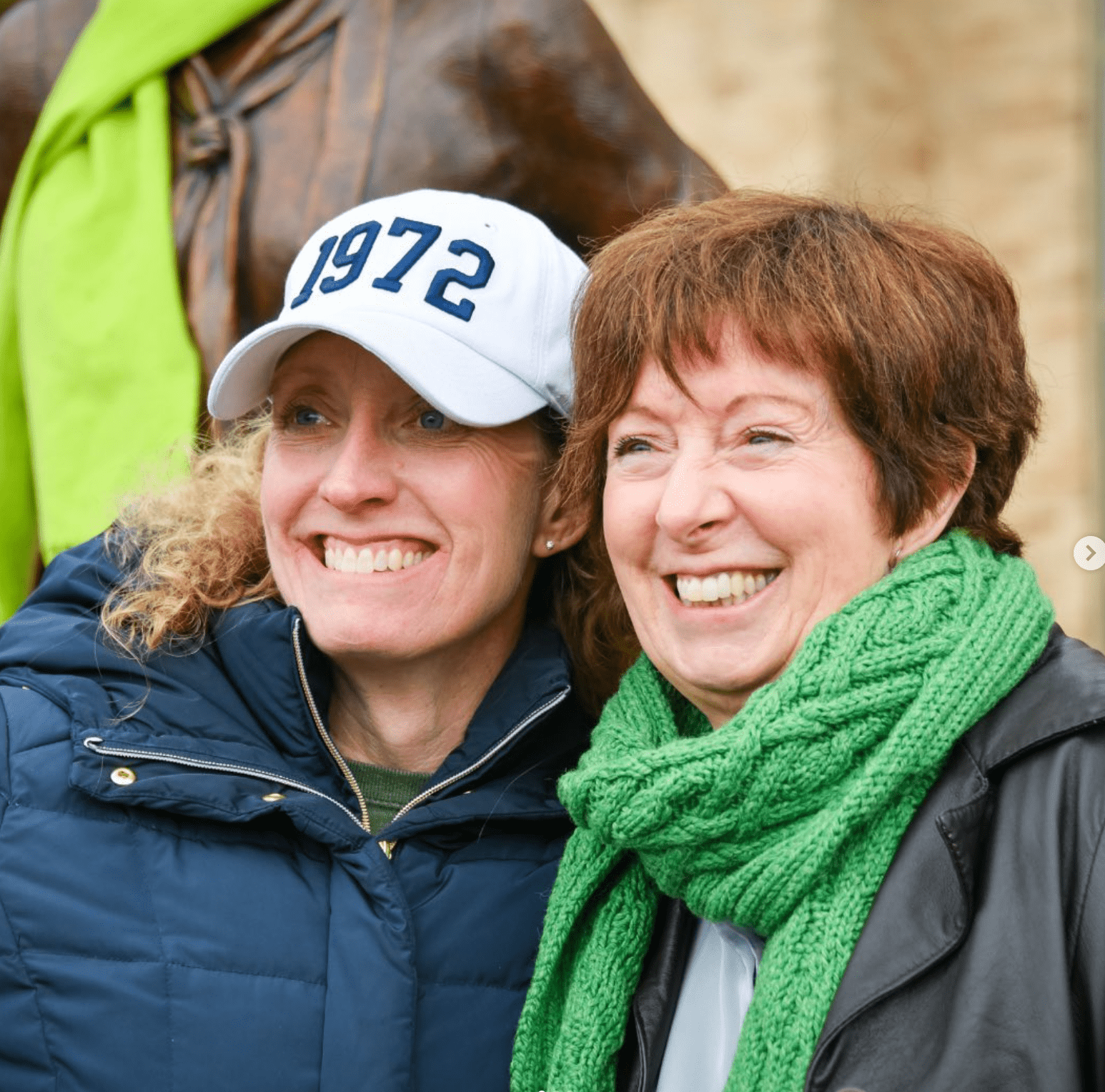 Mollie Peirick-Busam '98 with Muffet McGraw at the dedication on the new statue on campus
